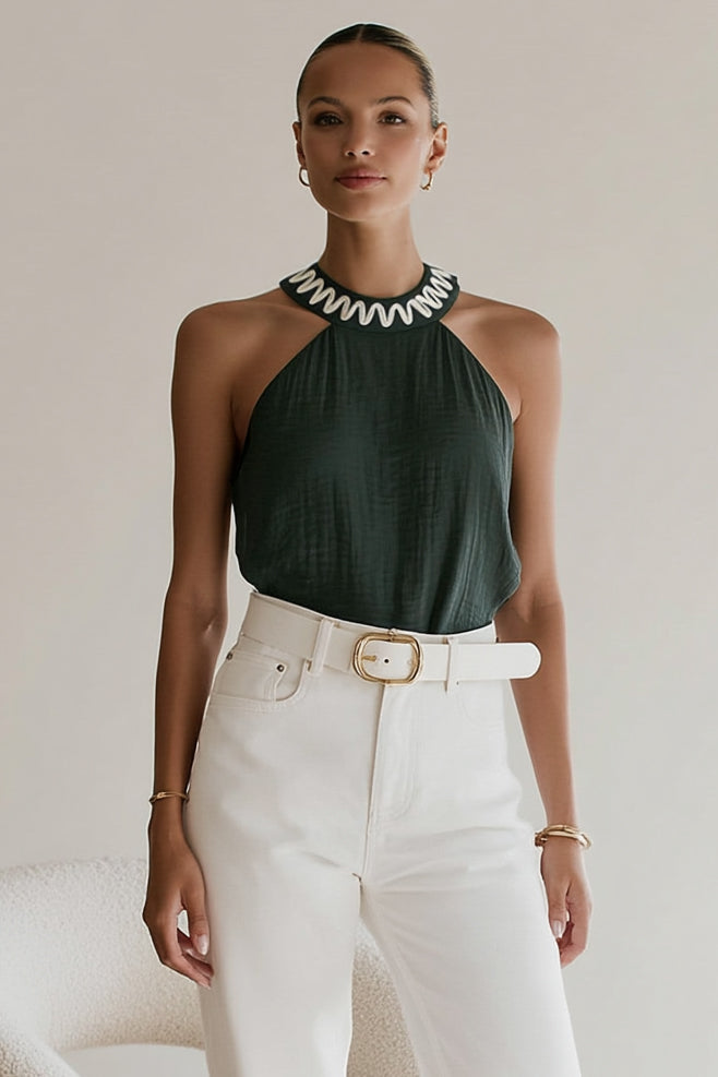 ╴Women's Abstract Appliqué Round Neck Tank Top