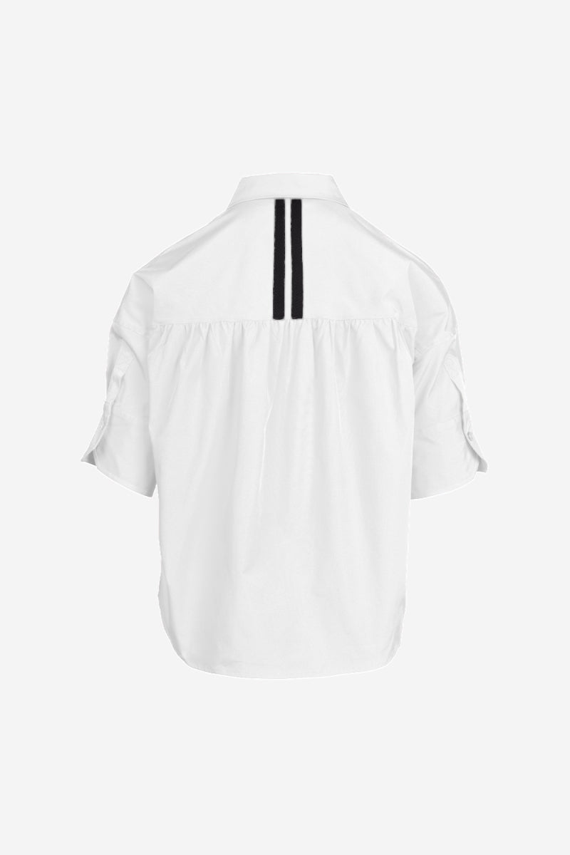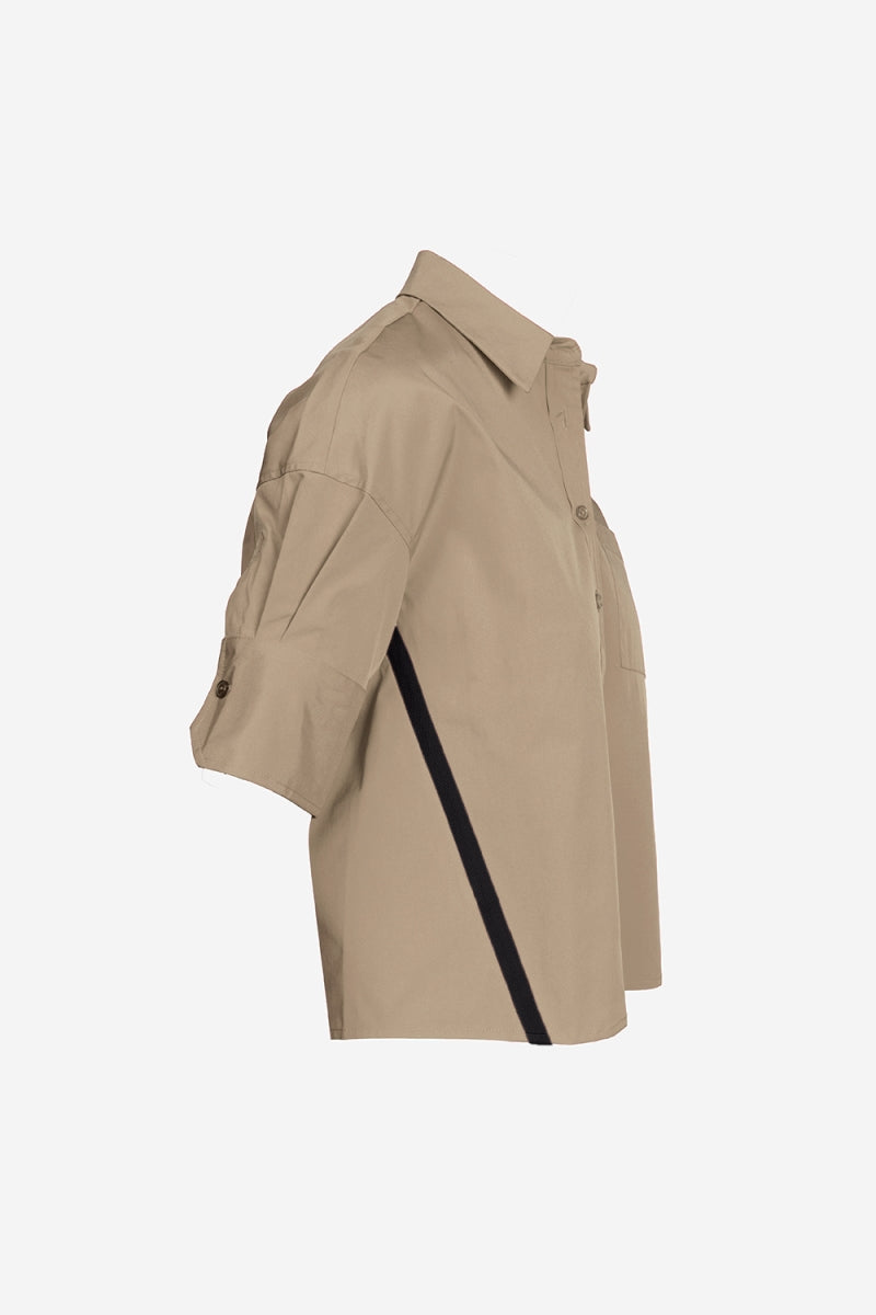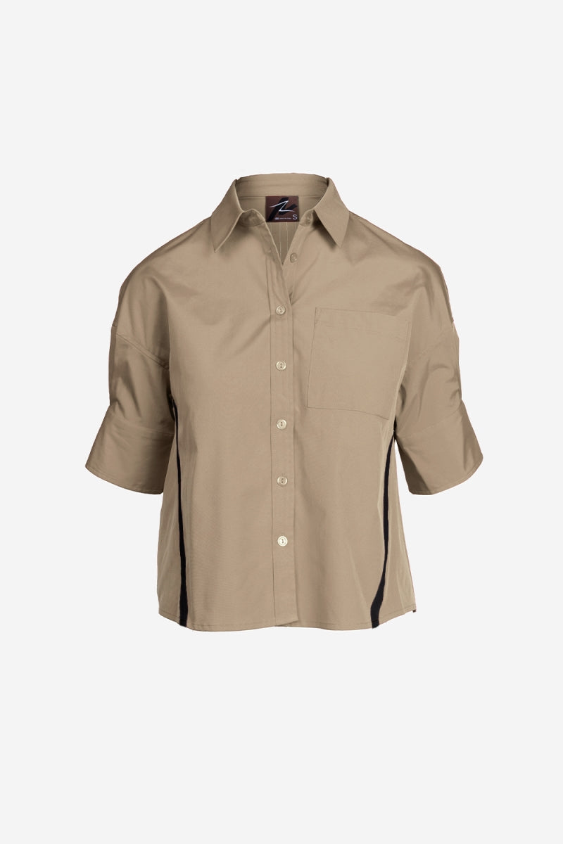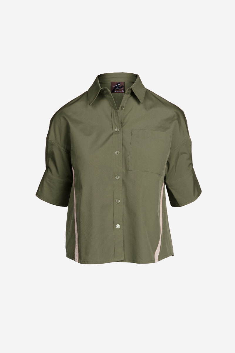 ╴Women's Boxy Half Sleeve Button Up Blouse With Stripe Accents