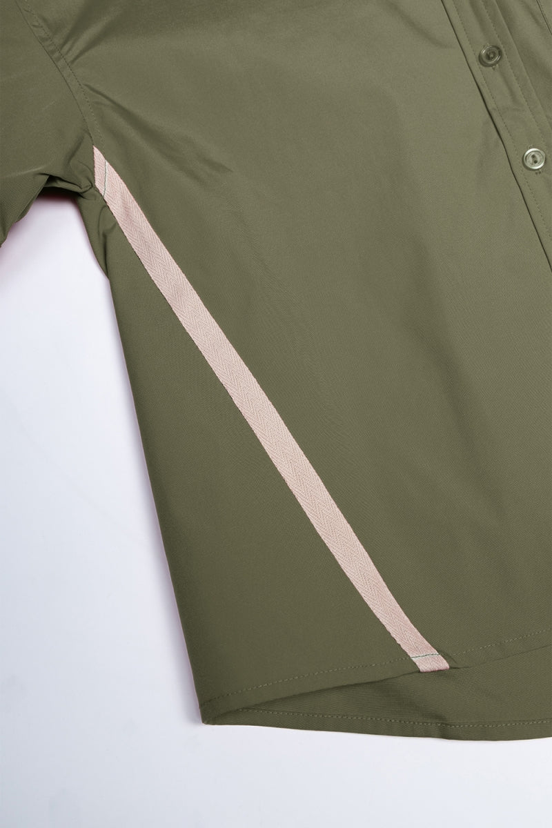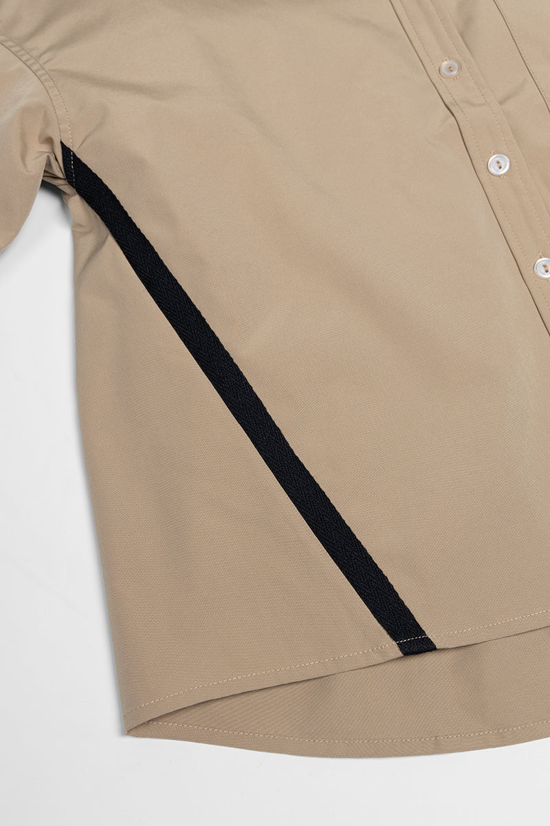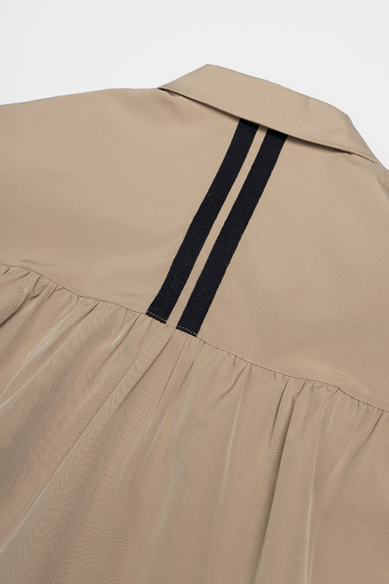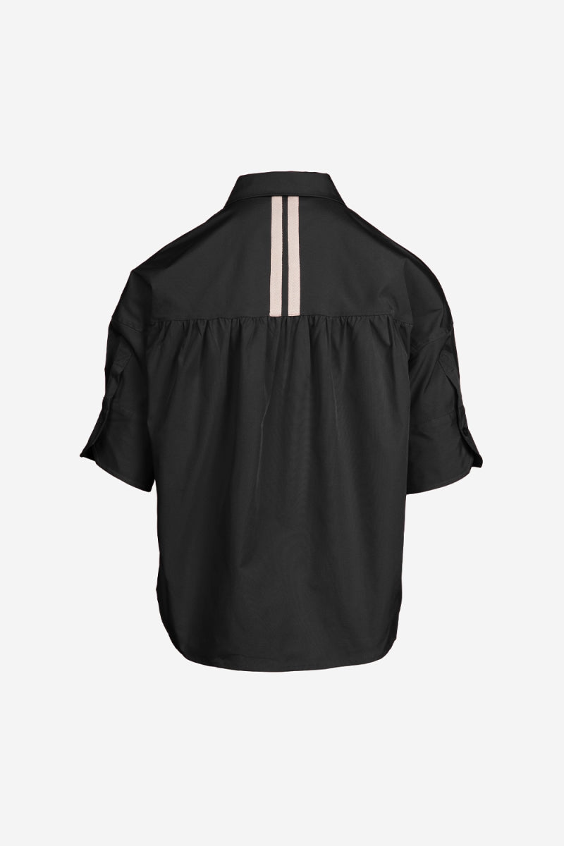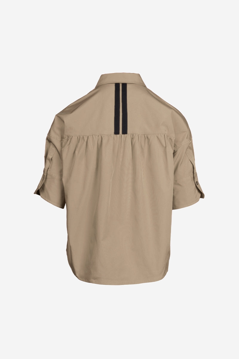 ╴Women's Boxy Half Sleeve Button Up Blouse With Stripe Accents
